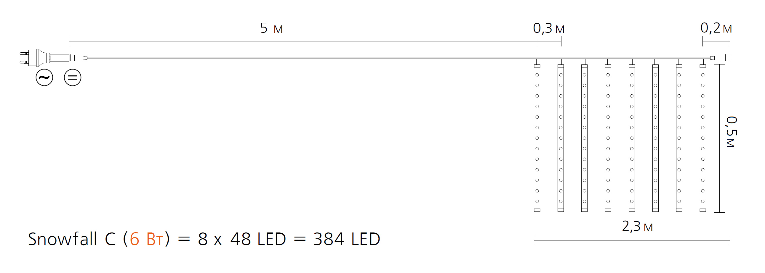 Яскрава гірлянда Snowfall з ефектом снігопаду(падаючий сніг) або мерехтливих метеорів. З її допомогою ви зможете легко прикрасити фасади будівлі, дерева, кущі - надати їм святкову і новорічну атмосферу. Гірлянда має двостороннє світіння. Є можливість з'єднання в лінію до 3 штук.
