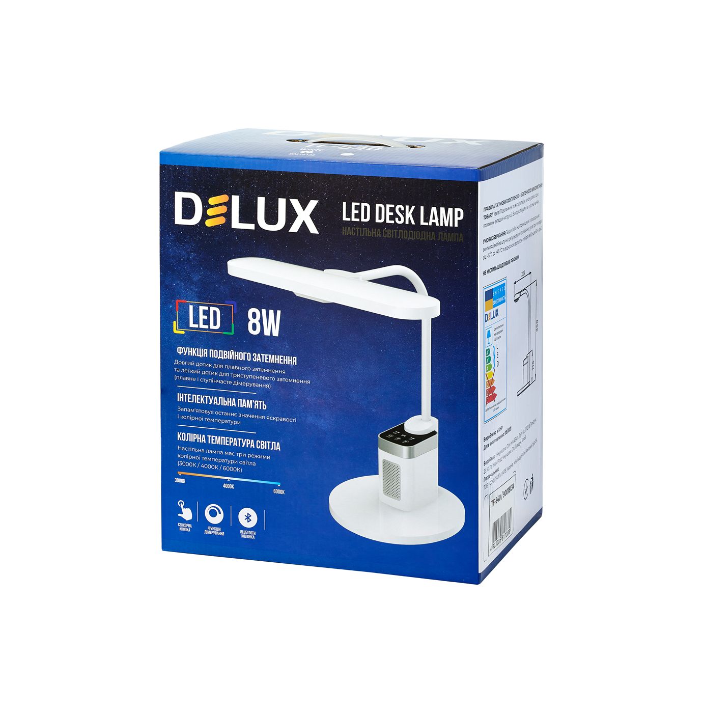 Світильник світлодіодний настільний DELUX_TF-540_8 Вт LED 3000K-4000K-6000K_Bluetooth колонка білий