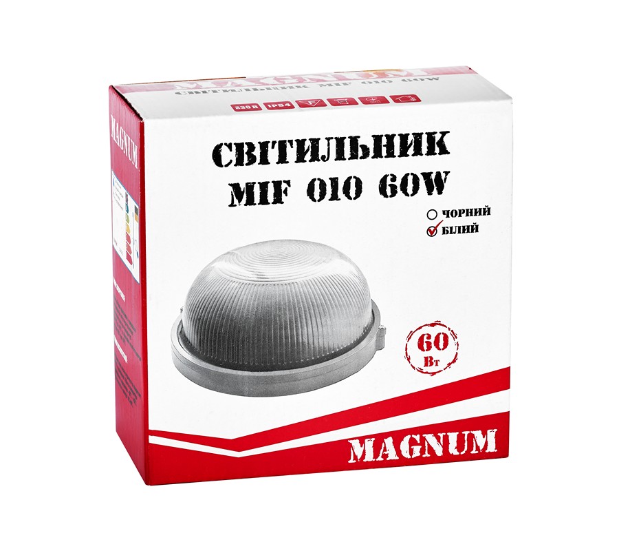 Влагозащищенные настенно-потолочные светильники ТМ Magnum серии MIF предназначены для внутреннего освещения помещений ЖКХ, коридоров, подсобных и складских помещений, лестничных пролетов и т.д.